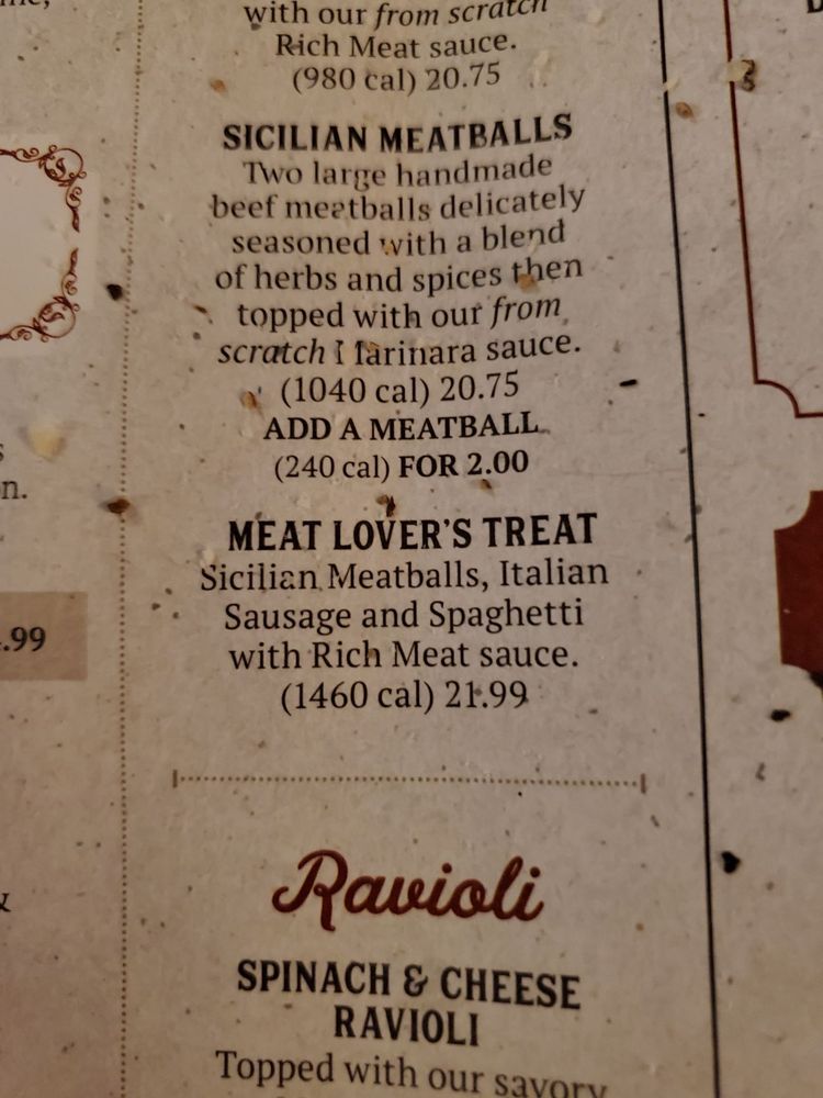Sicilian meatballs, Italian sausage and spaghetti with Rich Meat Sauce.