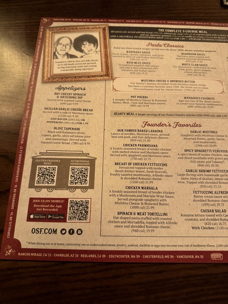 The Old Spaghetti Factory Eugene Menu (Update 2025)